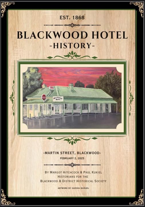 Blackwood Hotel book A5 size by Margot Hitchcock available from the Blackwood Historical Society – cost $20.00. contact Paul Kukiel for a copy.